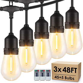 Larkvue 144FT(3 * 48FT) Outdoor String Lights with Remote, Dimmable Patio Lights with 45+5 Linkable Bulbs, 3 Modes 4 Timers for Bistro Cafe, Black 3Pack